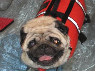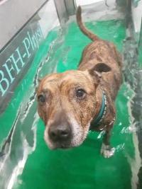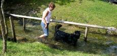 Aruma Kreuzband-OP Arthrose im KnieAruma mit Frauchen beim Wassertreten Opereationstechnik: TPLO Technik (Platte wurde wieder entfernt)